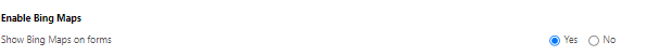If you want to see the maps on the form, then it is essential to set ‘Enable Bing Maps’ to ‘Yes’ within System Settings as shown below: